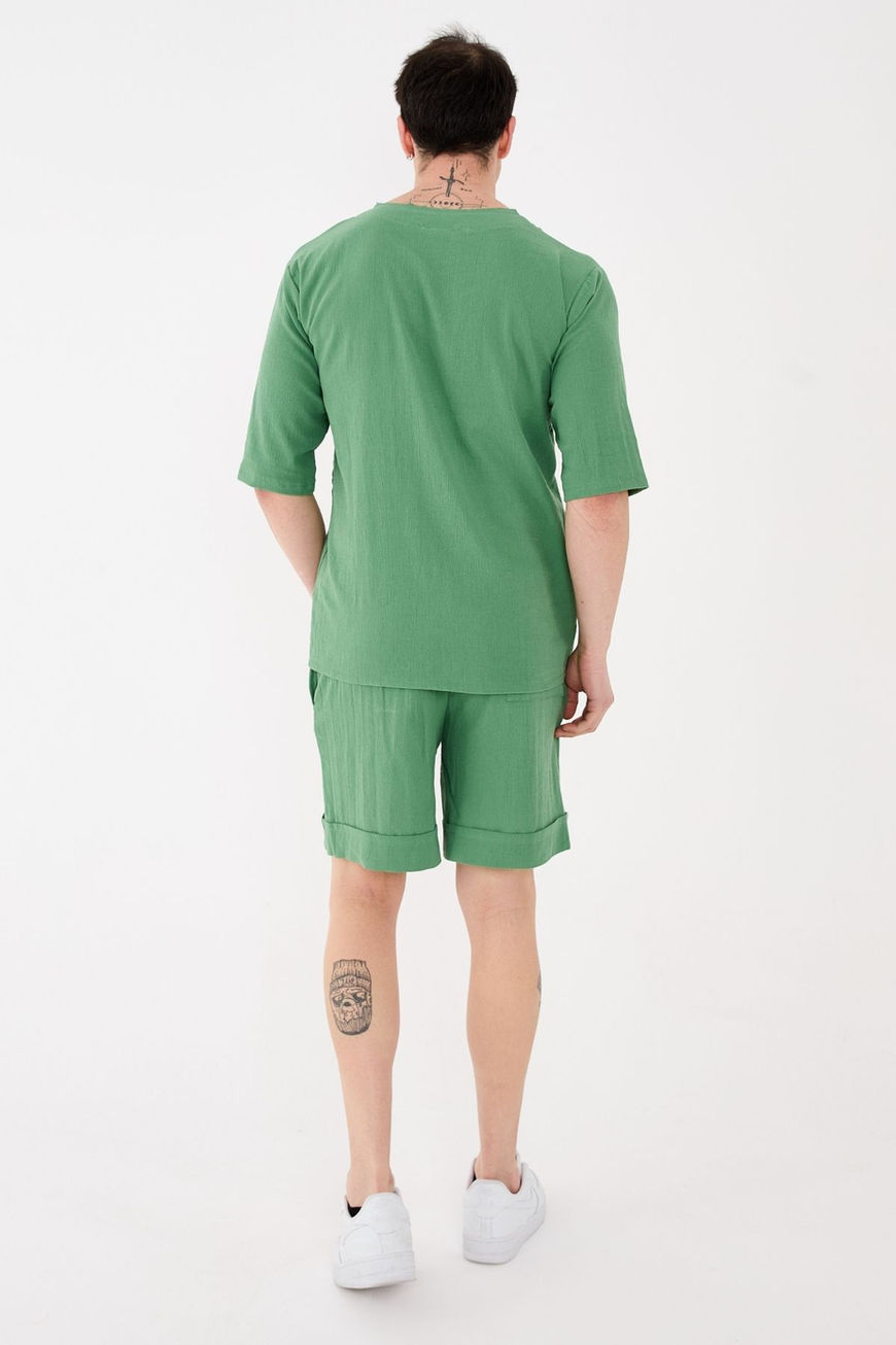 %100 Pamuk Rahat Kalıp Bisiklet Yaka Fakir Kol Tişört Benntn Yeşil c14