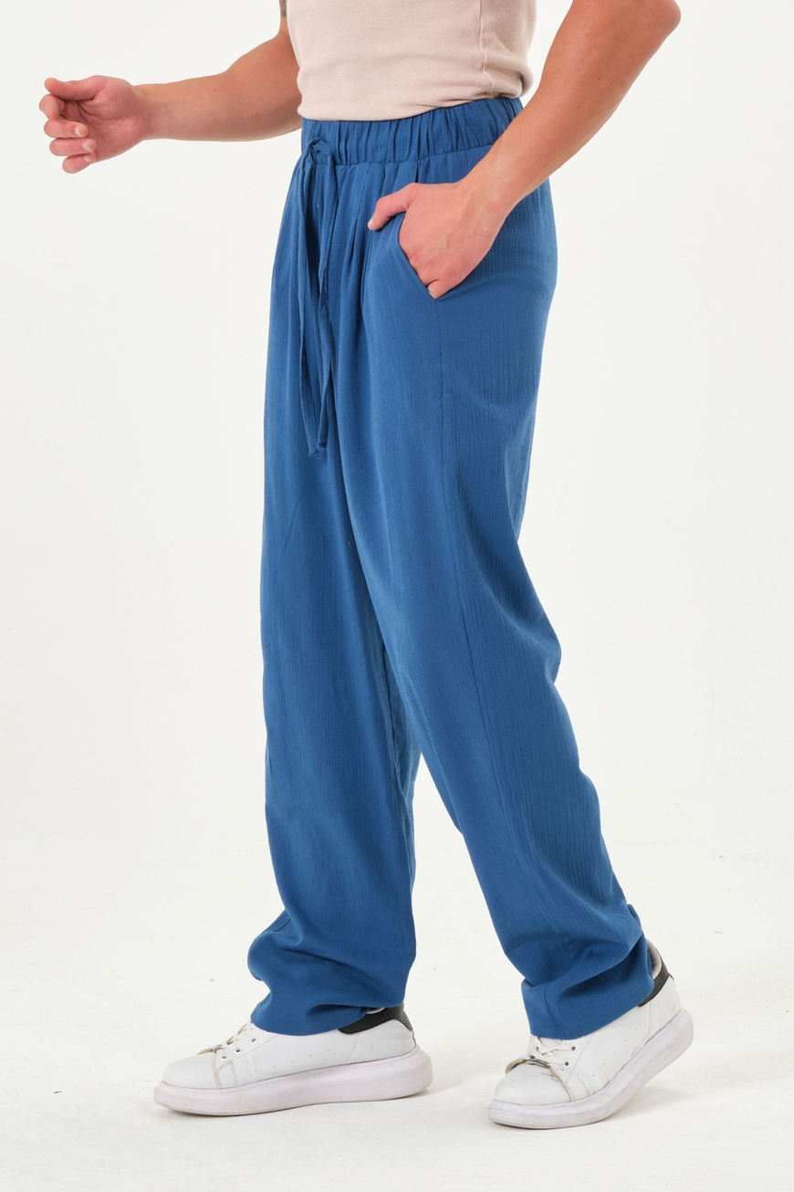 %100 Pamuk Şile Bezi Bol Paça Oversize Yazlık Pantolon Saks Mavi c06